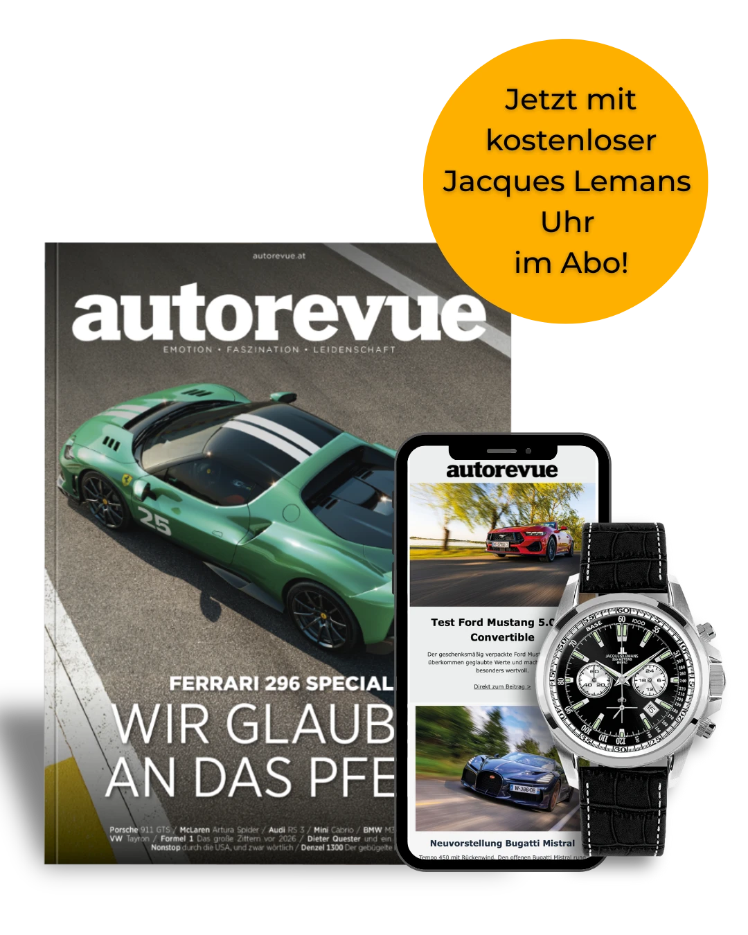 Alles rund um die aktuellsten Themen der Auto- und Motorwelt im bequemen Jahresabo. Ihr Premiumabo enthält das gedruckte Magazin mit kostenlosem Versand sowie alle Features der autorevue online inkl. Zugang zu allen a+ Premiumartikeln. Dazu erhalten Sie für einen kurzen Zeitraum eine Jacques Lemans Livepool gratis dazu.