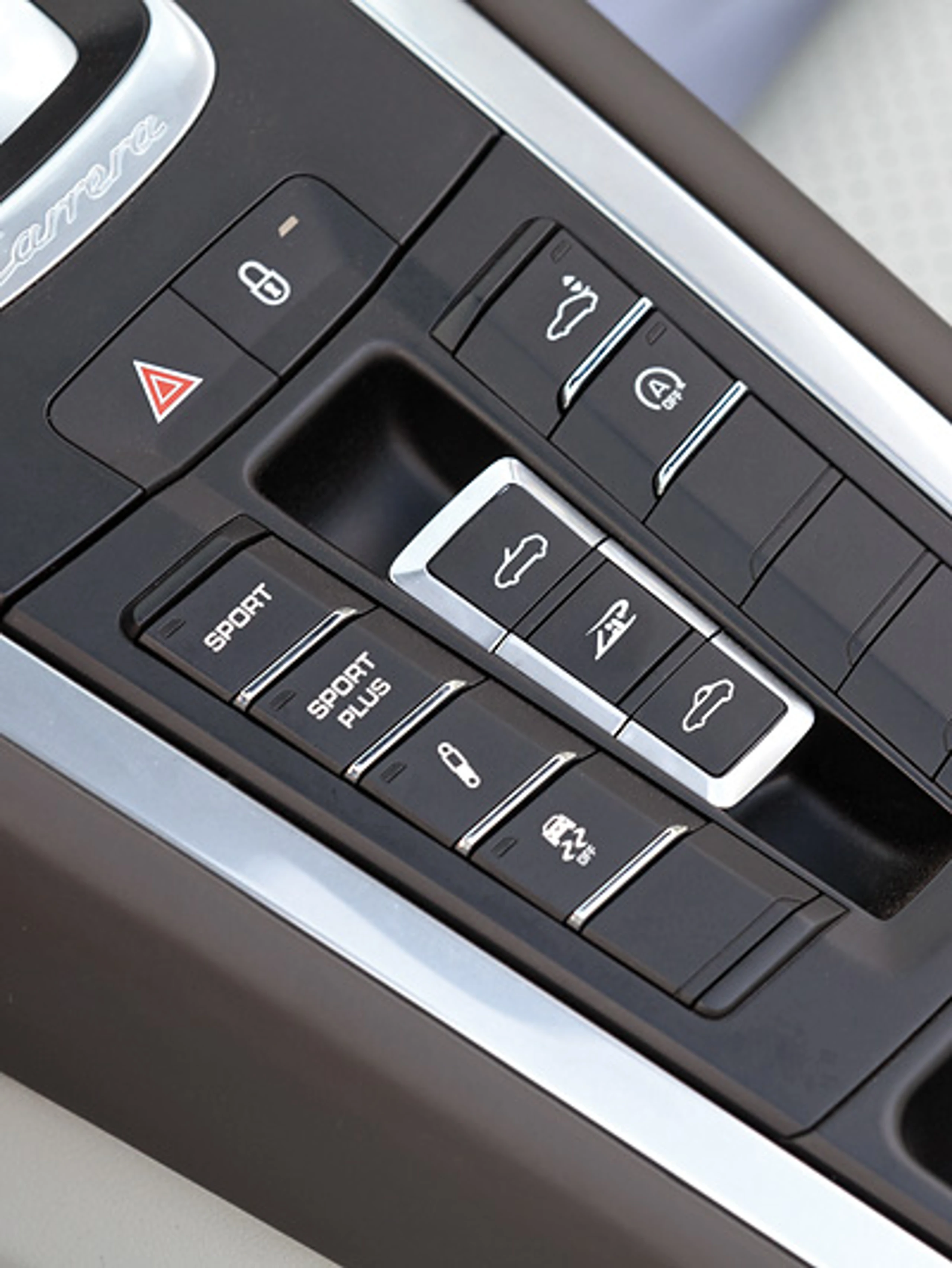 Nicht, dass die Schaltbox unpräzis wäre, aber wenn man statt deren vier Schaltgassen nun fünf hat, wird’s einfach eng, auch wenn die etwas breitere Mittelkonsole ein wenig mehr Platz bietet. Bewusst hat man bei Porsche den siebten Gang etwas kürzer gewählt als beim Doppelkupplungsgetriebe, damit man auf der Autobahn nicht ständig in den sechsten Gang zurückschalten muss. So ab Tempo 100 macht der 7. Gang – wenn man es nicht sonderlich eilig hat – auch Sinn. Die Drehzahl und das Geräuschniveau werden massiv abgesenkt. Und beim Verbrauch sind auch nur gute Dinge von der siebten Stufe zu erwarten.