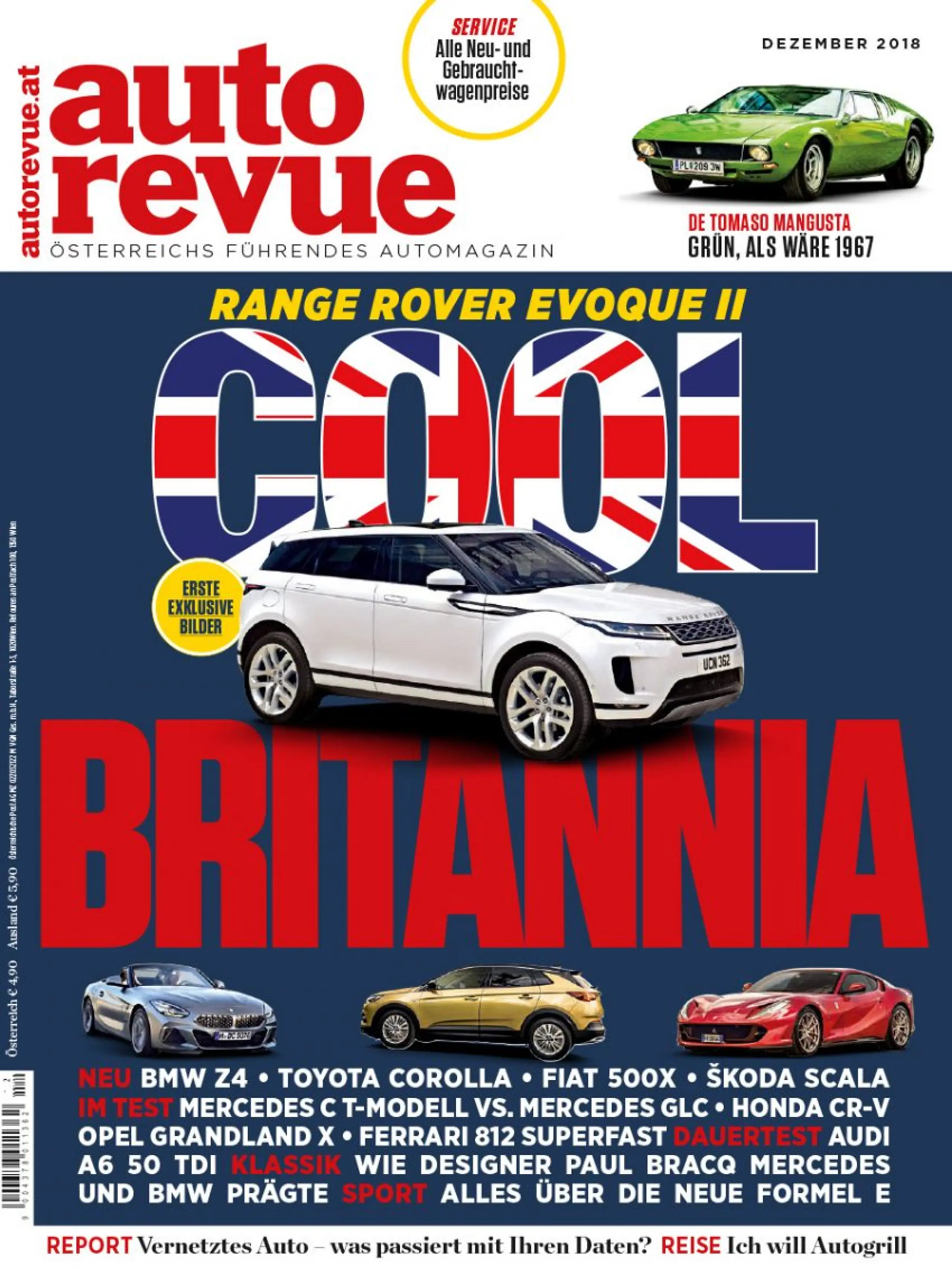 10 Audi R8 V10 quattro56 Audi A6 50 TDI quattro12 BMW 8er-Coupé und -Cabrio28 BMW Z472 BMW 225xe Active Tourer34 Citroën C5 Aircross66 Ferrari 812 Superfast32 Fiat 500X54 Ford Ka+ 1,2 Active52 Honda HR-V 1,5 i-VTEC60 Honda CR-V 1,5 CVT63 Hyundai Santa Fe 2,2 CRDi14 Mercedes-AMG A 3546 Mercedes-Benz C 180 d46 Mercedes-Benz GLC 220 d88 Mini Cooper S Cabrio72 Nissan Navara N-Guard64 Opel Grandland X 1,5 CDTI22 Range Rover Evoque38 Škoda Scala62 Suzuki Vitara 1,4 DITC36 Toyota Corolla12 VW T-Cross