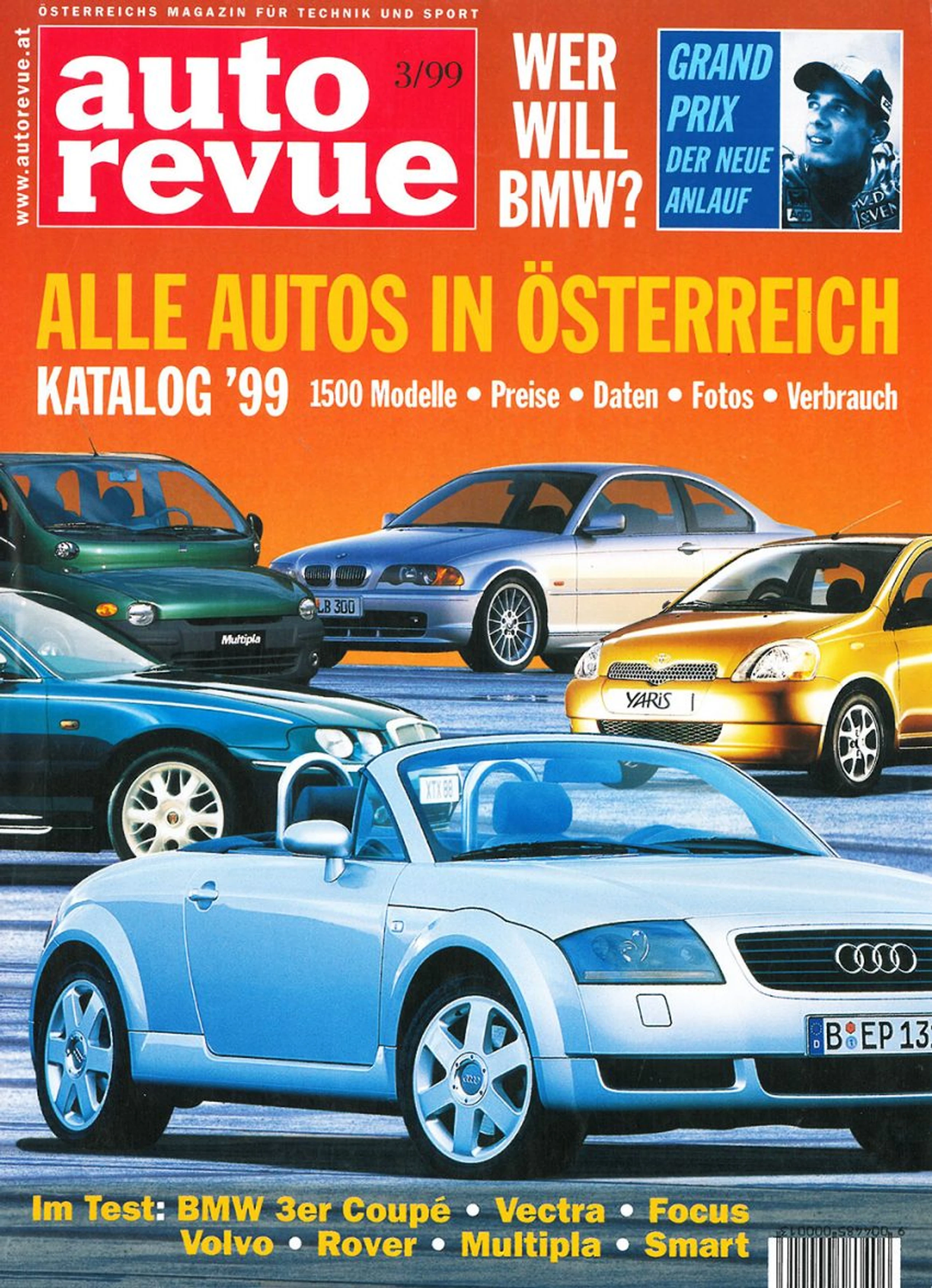 AUTOSAudi S3, A3 5tg, TT Roadster (Seite 10)Audi TT Sperrer Motorsports (Seite 64)BMW 3er Coupé (Seite 34)Chevrolet Alero (Seite 58)Multipla Fiat JTD 105 ELX (Seite 50)Ford Focus (Seite 46)Honda HR-V HJoy Machine (Seite 44)Jeep Grand Cherokee (Seite 54)Opel Vectra (Seite 38)Renault Avantime (Seite 28)Rover 75 (Seite 42)Saab 9-5 V6t (Seite 19)Smart mit Trust plus (Seite 30)Volvo S40 D & S80 2,4 (Seite 62)