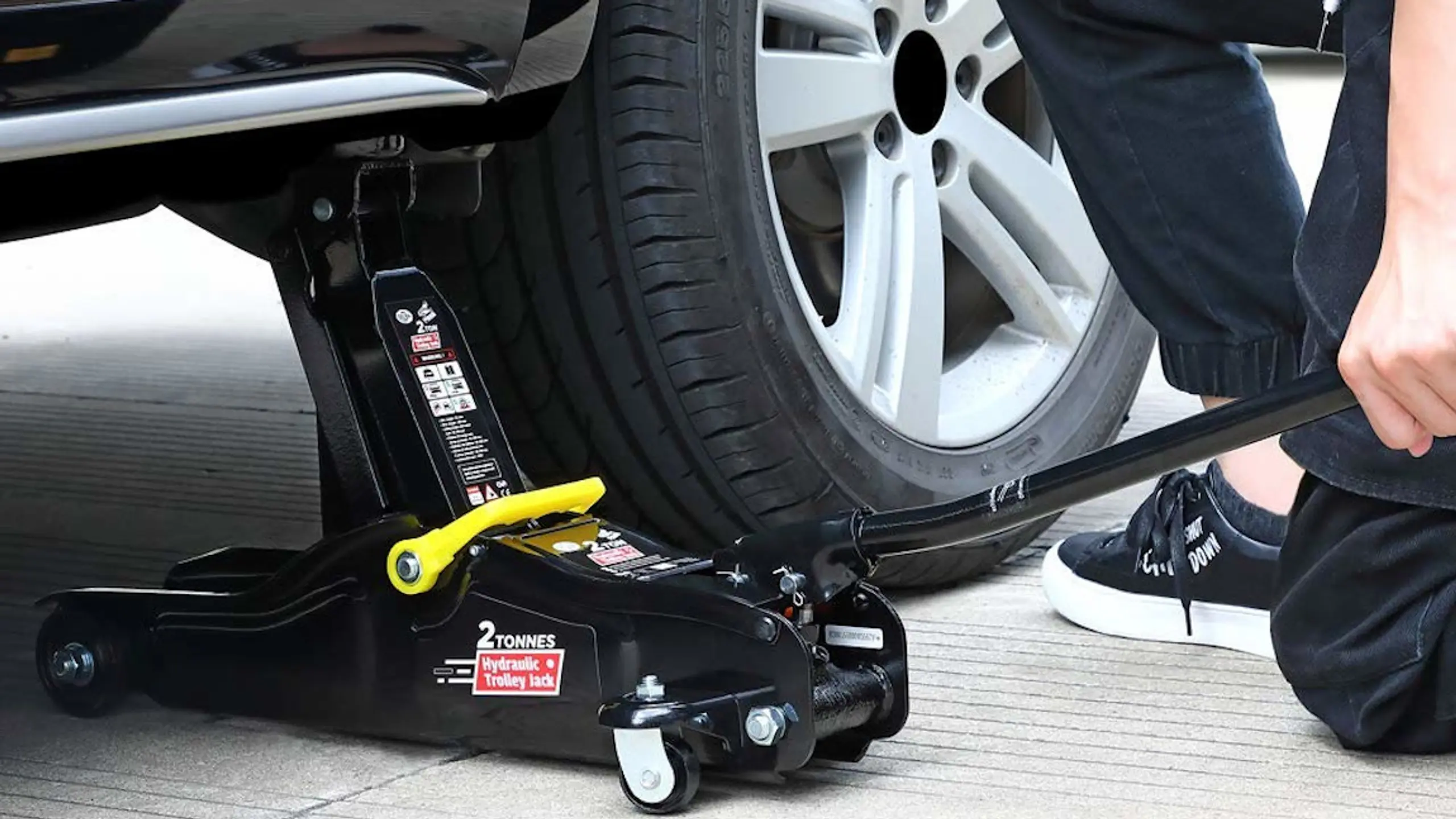 Ein Auto anzuheben, ist eine verantwortungsvolle Aufgabe - damit der Wagenheber sie "stemmen" kann, darf die maximale Tragkraft keinesfalls überschritten werden.