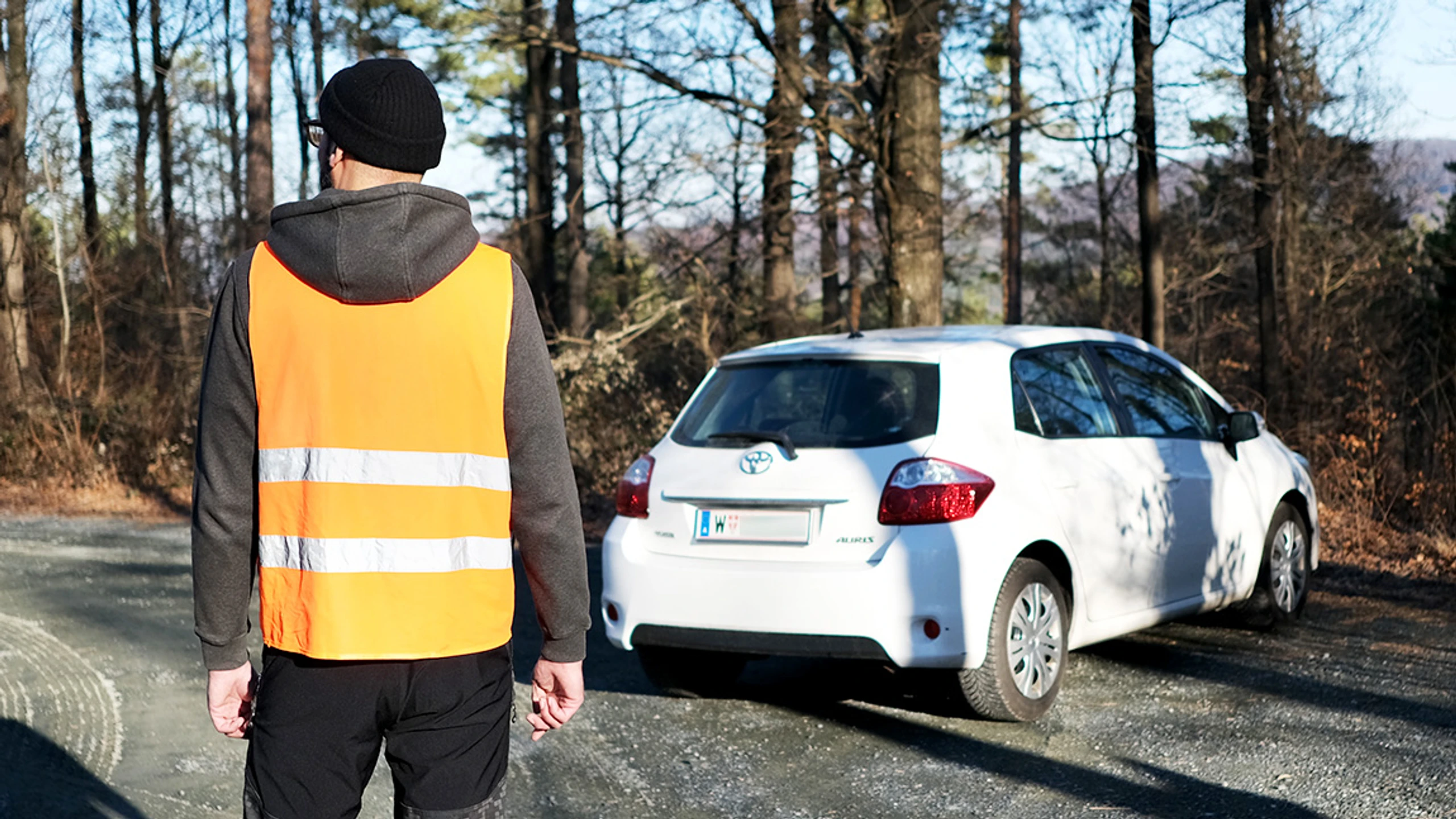 Darüber hinaus gibt es auch noch die Tragepflicht. Diese schreibt vor, dass die Warnweste im Bedarfsfall, also wenn man nach einem Unfall oder einer Panne das Fahrzeug verlässt, auch getragen werden muss: